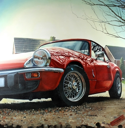 Spitfire, a contemporary study of a red Triumph Spitfire Mark III,