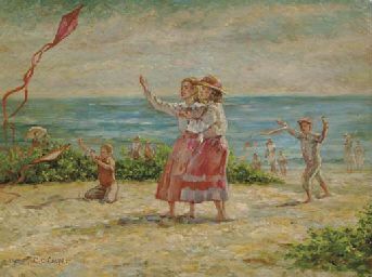 Children Flying Kites at the Seashore