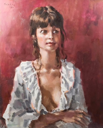 | Portrait of Jenny Truman wearing loosely arranged blouse | |