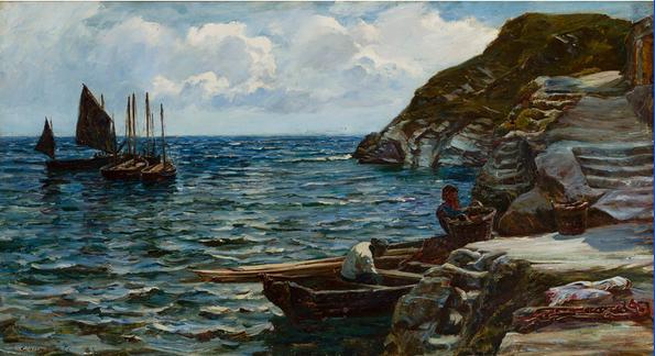 FISHING BOATS OFF THE COAST OF CORNWALL