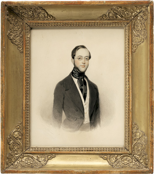 | Bildnis eines jungen Herren mit Nickelbrille und schwarzem Halstuch. | |