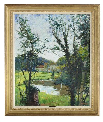 Landscape with Brook and Village in Distance