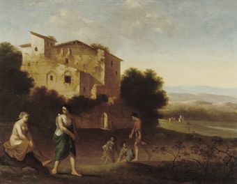 | An Italianate landscape with figures, a Classical temple beyond | |