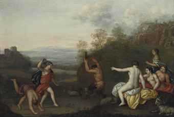 | Nymphs and a Satyr dancing in a landscape, ruins beyond | |