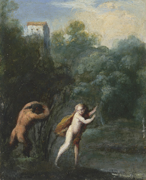 | Pan and Syrinx, Campagna with bathing nymphs. | |