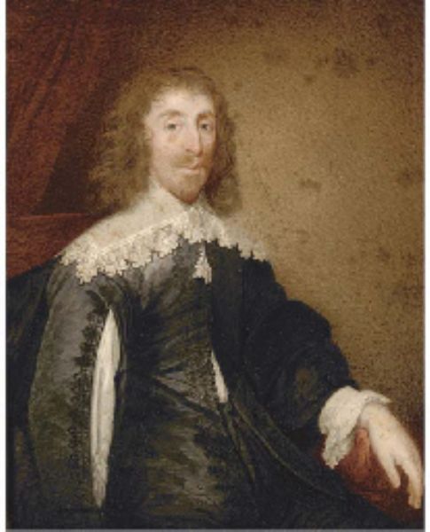| Arthur, 1st Baron Capel, seated in black doublet with lace collar | |