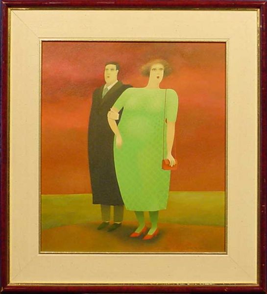 Lady in green dress and her companion