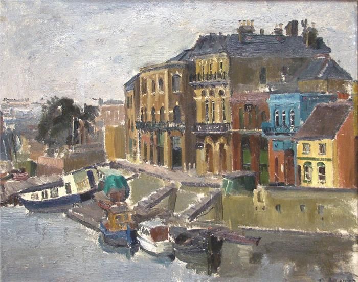 Impressionistische Häuserzeile an einem Kanallauf