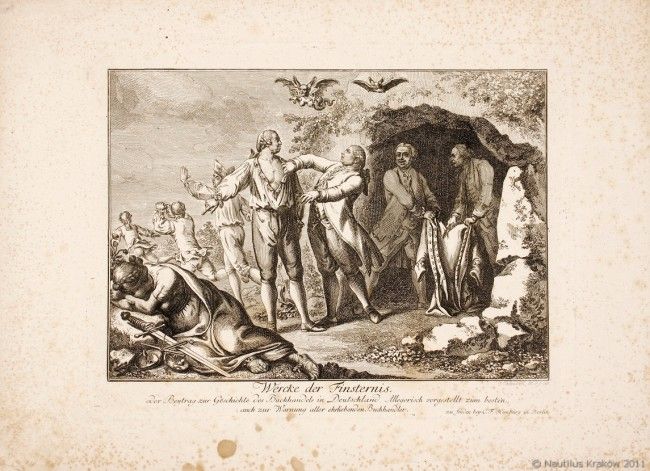 Obrazek satyryczny na księgarzy przedrukowujących zastrzeżone nakłady książek