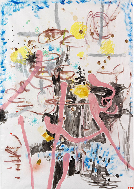 Mixed Media Watercolor, gouache and lacquer paint on paper.