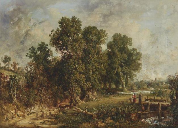 | HERDING SHEEP ALONG A PATHWAY WITH A WOMAN CROSSING A FOOTBRIDGE | |