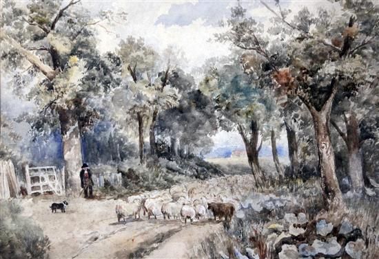 Shepherd and flock on a lane