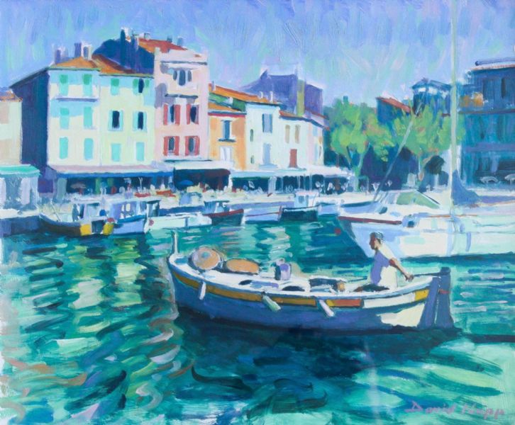 Continental harbour scene and "The Old Church, Piana Dusk"