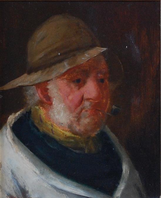 | Head and shoulders portrait study of a pipe-smoking fisherman | |