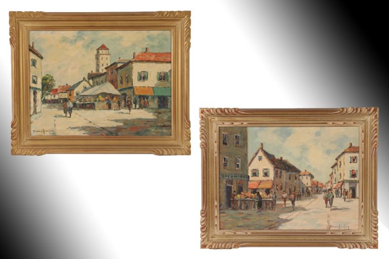 A pair of French village scenes