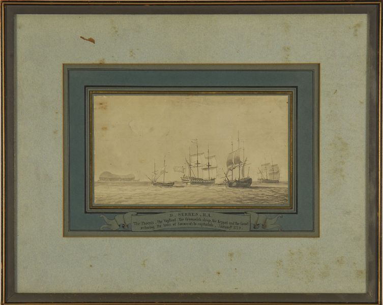 | The Phoenix, The Vigilant, The Greenwich Sloop, The Keppel and The Comet Reducing the Town of Savannah to Capitulate.. | |