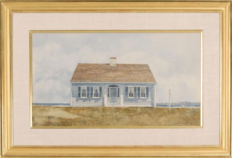 White clapboard house on the harbor