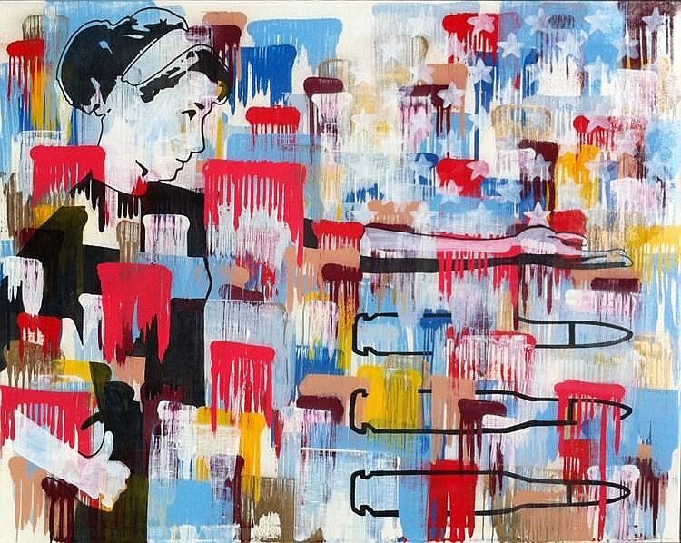 Ink and spray paint on canvas