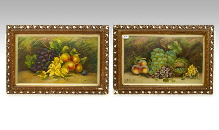 Pair of Still Lifes, Studies of Fruit and Flowers