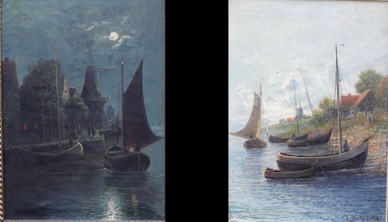 Nächtliche Hafenansicht - Fischerboote am Ufer