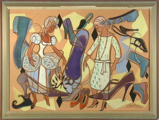 Zwei Frauen, umgeben von zahlreichen Schuhen