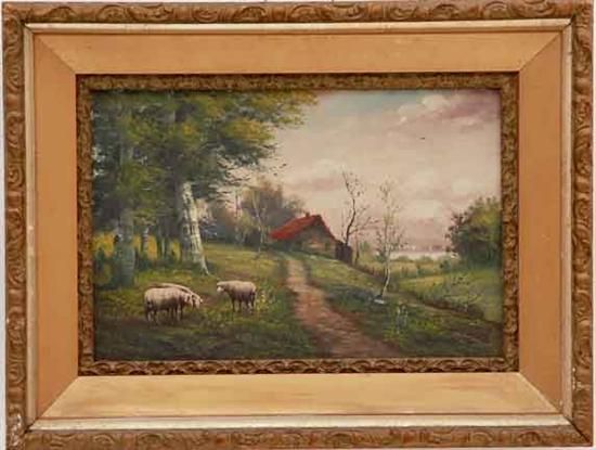PAIR OF WORKS: CATTLE AND SHEEP IN LANDSCAPES