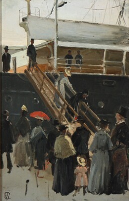 A passenger liner. Signed E. P. Oil on paper laid on panel. 28.5×19 cm. | |