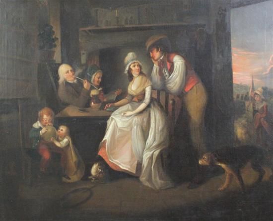 Cottage interior with figures around a table
