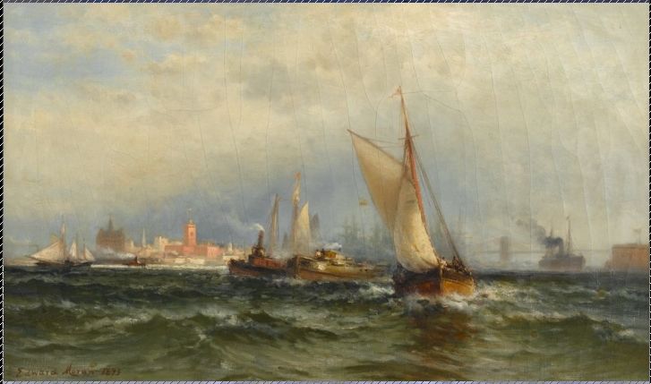 STEAMSHIPS AND SAILING BOATS IN NEW YORK HARBOR