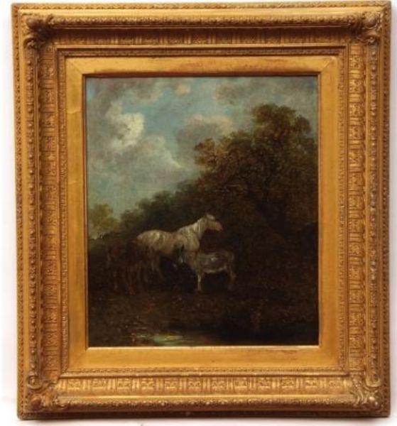 White and Brown Horse with Donkey in Landscape