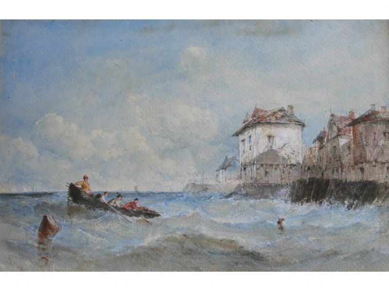 FISHING BOAT IN CHOPPY COASTAL WATERS