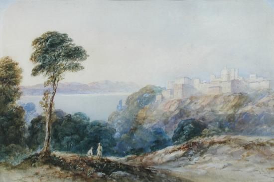 View of an Italian hill town by the sea