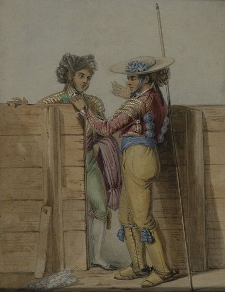 | Enligt konstnärens anteckningar banderiljär och picador vid en tjurfäktning i Granada 1850 | |