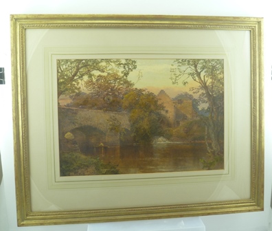 | River Landscape with arched Stone Bridge | |