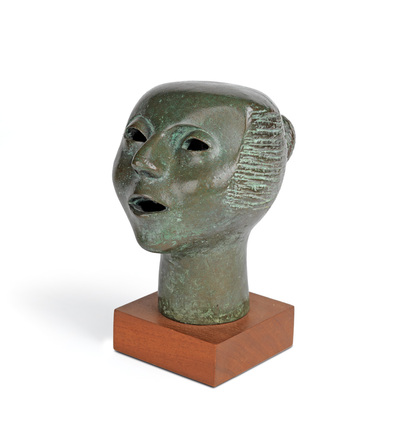 | Bronze Cast bronze with a pale green patina mounted on a wooden base, 1960. | |
