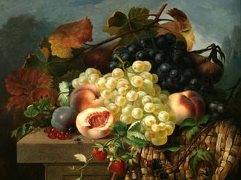 Still Life Study of Grapes, Peaches and Strawberries on a Ledge