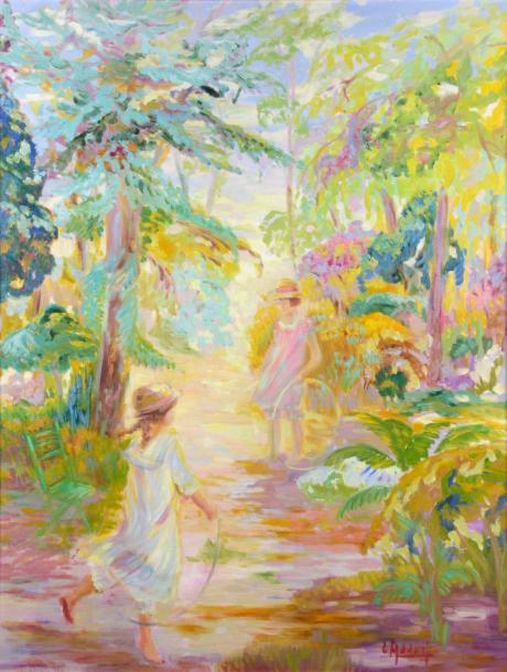 FILLETTES JOUANT AU CERCEAU AU PARC MONCEAU