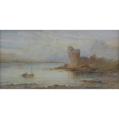 | Urquhart Castle, Loch Ness, with a figure in a fishing boat in the foreground | |
