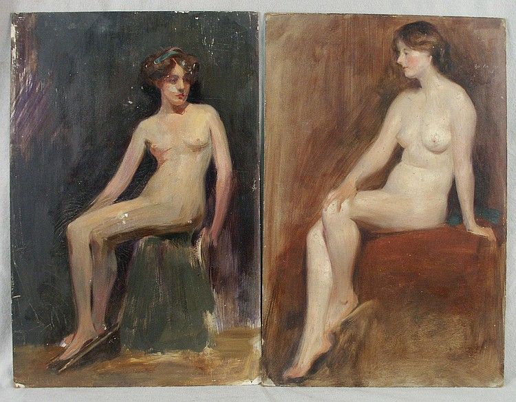TWO FIGURAL STUDIES OF SEATED NUDES