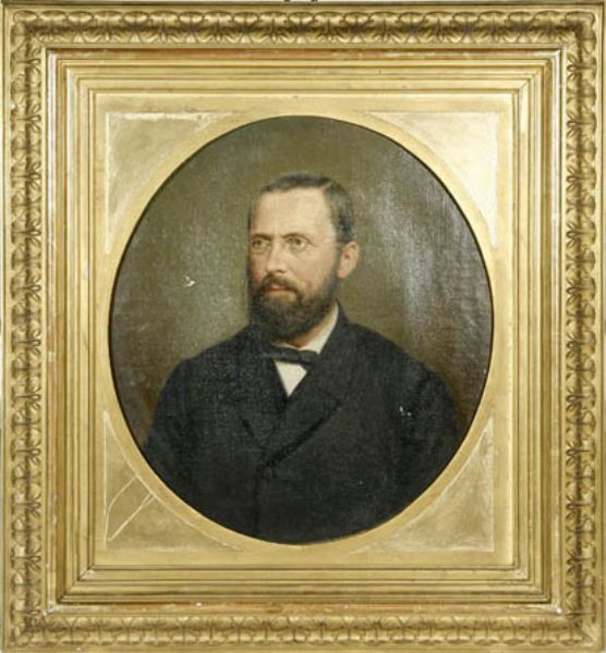 | Halbportrait eines bärtigen Herrn mit Brille. Er trägt einen schwarzen Gehrock | |