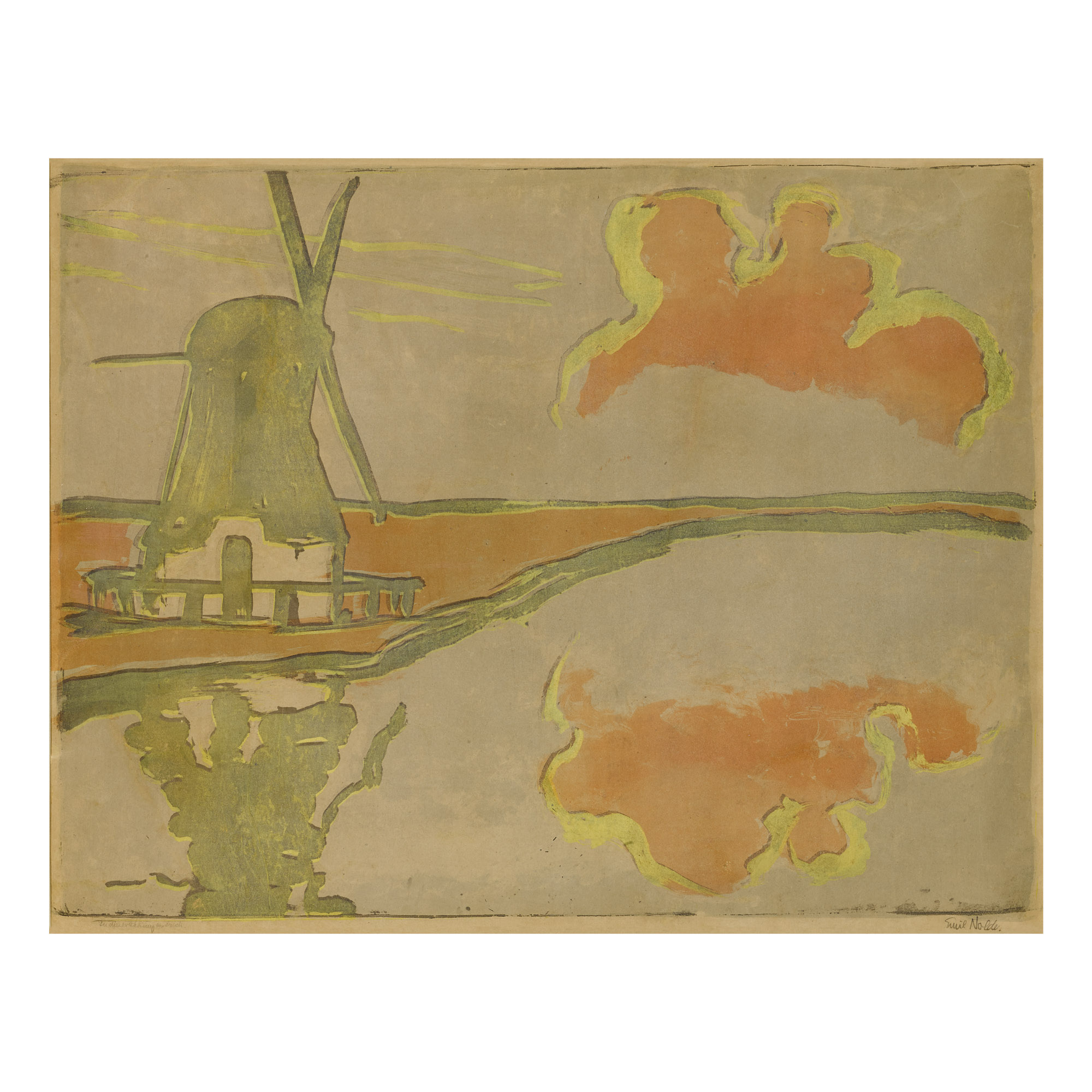 | Lithograph printed in a unique color combination of orange, yellow, grey and green | |