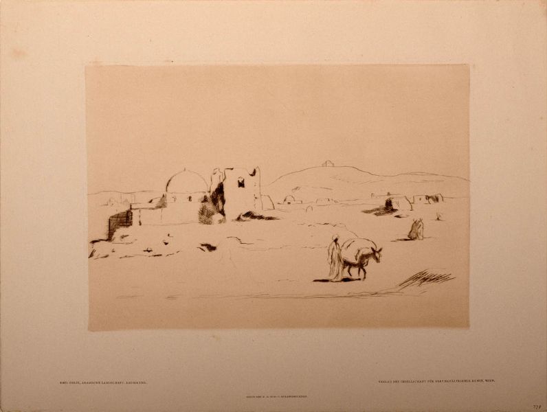 Arabische Landschaft mit Figurenstaffage und Eselstreiber.