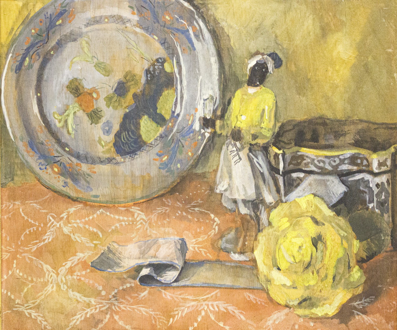 | Still life with the statuette of Moor and plate Company of the Indies | |