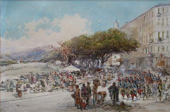 Défilé de fantassins sur le quai actuellement Jean Jaurès