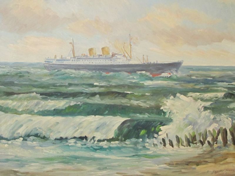 Dampfer vor Küste