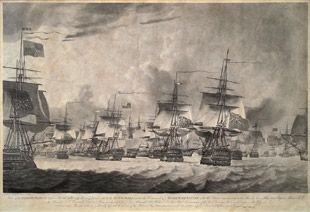 | Flota brytyjska adm. Duncana atakuje flotê holendersk¹ adm. de Wintera w pobli¿u Texel | |