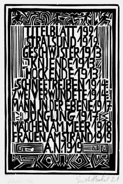 Inhaltsverzeichnis der Erich Heckel Mappe.