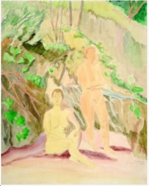 Zwei Figuren am Ufer