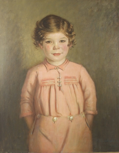 | portrait of 'Joe', in pink smocked shirt romper suit | |