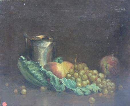 Nature morte aux raisins et tasse d'argent